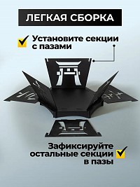 Компактный и вместительный очаг для костра изготовлен из прочной стали и покрыт термозащитной краской для предотвращения коррозии и сохранения эстетики. Это прекрасный подарок, с душой и заботой, на день рождения, новоселье, новый год для тех, кто вам дорог.