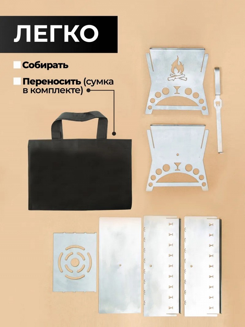 Купить складной походный мангал заводского производства можно с дополнительными аксессуарами (плитка для чайника / кастрюли и кочерга). Разборный мангал станет прекрасным подарком на день рождения, новоселье, новый год для тех, кому вы дарите подарок с заботой.