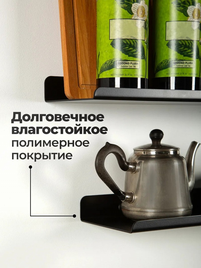 Комплект полок металлических настенных. Универсальные навесные парящие полочки из коллекции "Минимализм" спроектированы для современных интерьеров кухни, гостиной, спальни, ванной и туалета.
