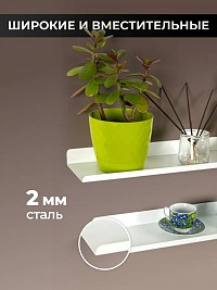 Комплект полок металлических настенных. Универсальные навесные парящие полочки из коллекции "Минимализм" спроектированы для современных интерьеров кухни, гостиной, спальни, ванной и туалета.