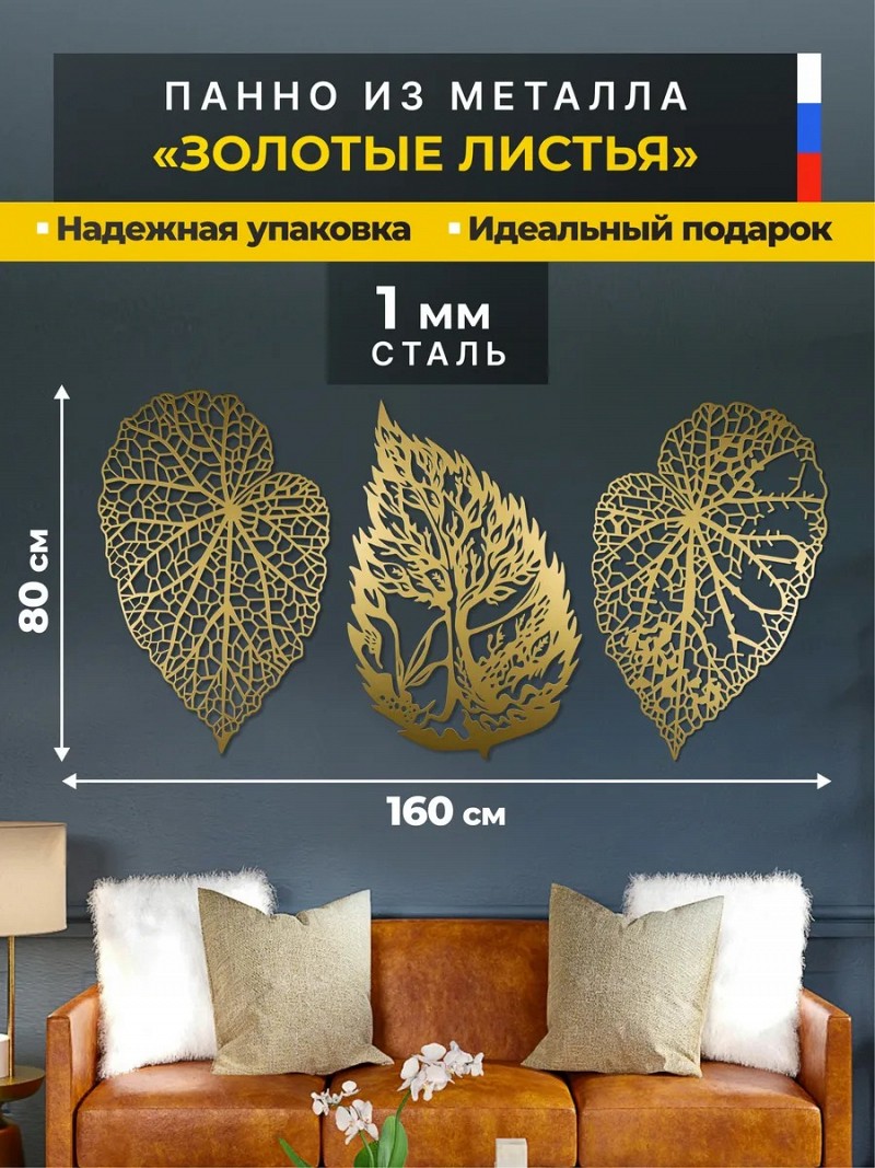 Панно металлическое на стену «Золотые листья»
