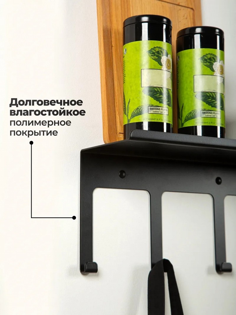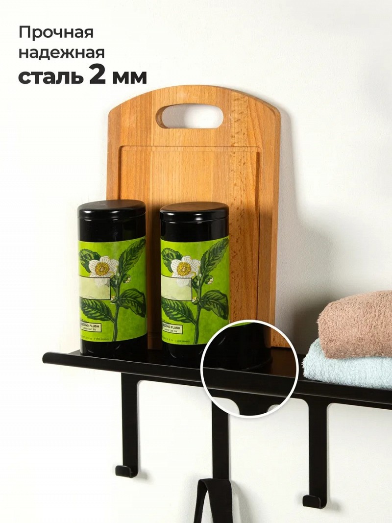 Полка металлическая настенная с крючками. Универсальная навесная полочка из коллекции "Минимализм" спроектирована для современных интерьеров кухни, прихожей, спальни, ванной и туалета.