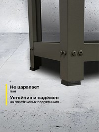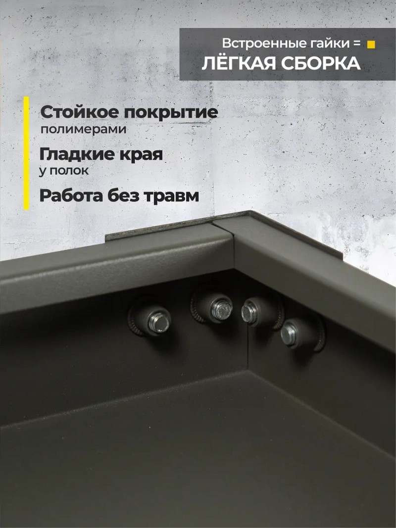 Полки стеллажа для инструментов крепятся к стойкам на надежные метизы со встроенной резьбой.