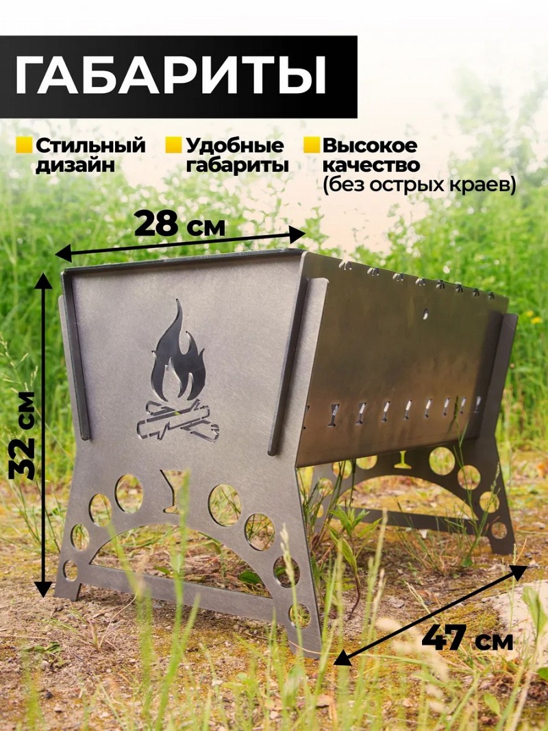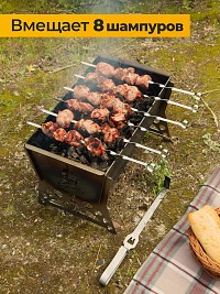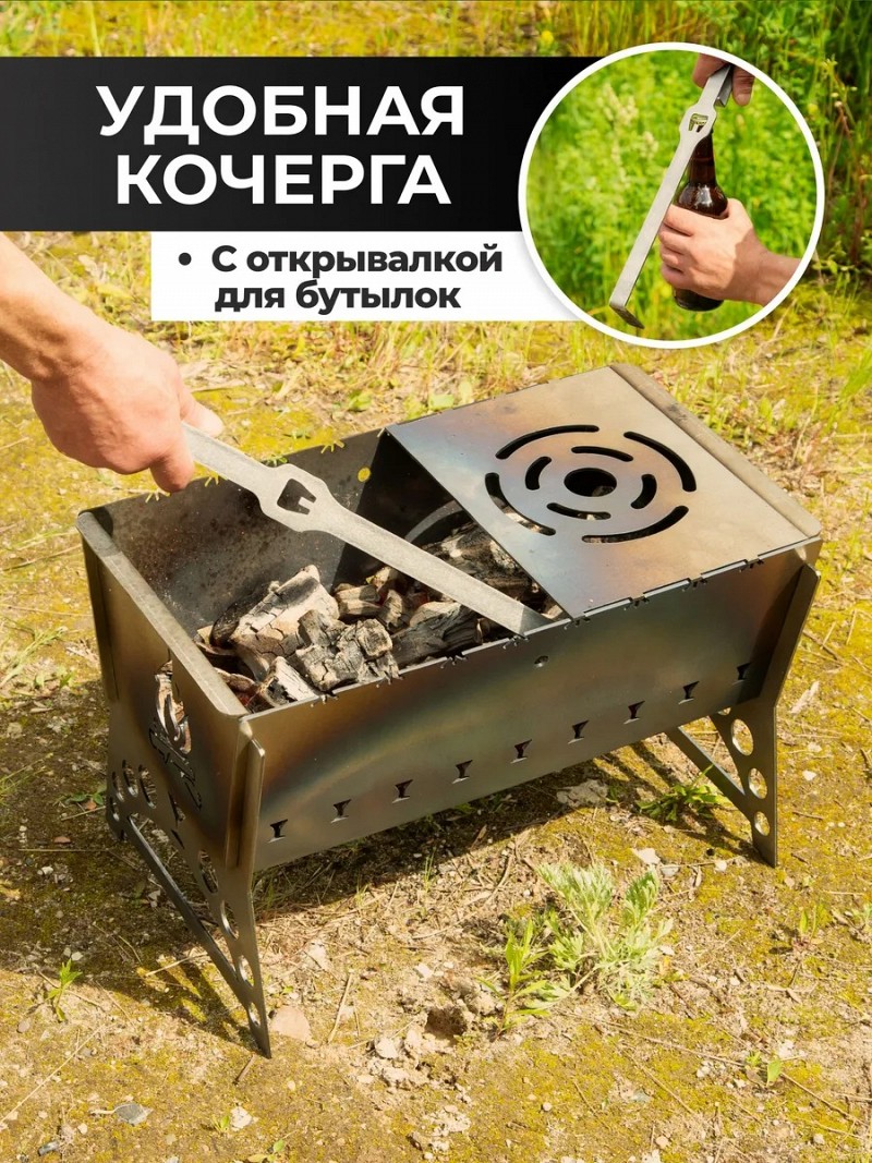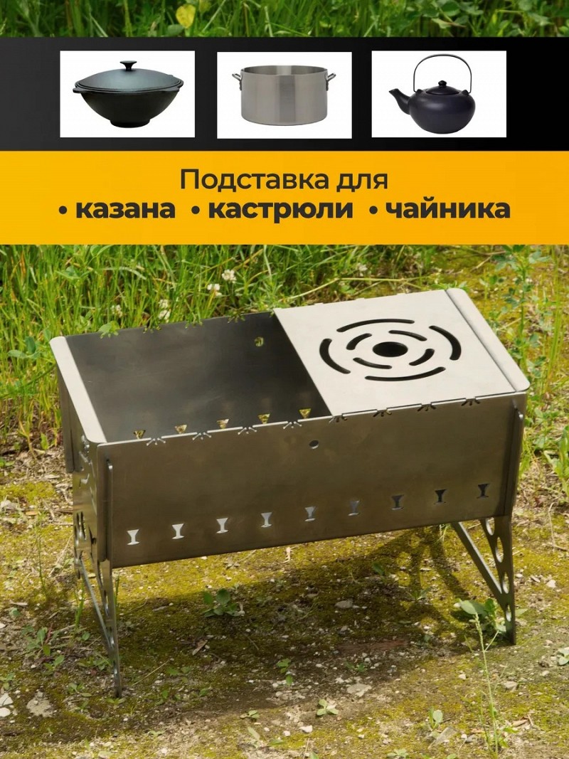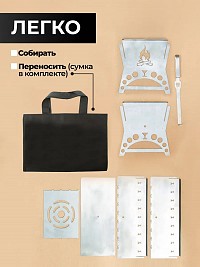 Купить складной походный мангал заводского производства можно с дополнительными аксессуарами (плитка для чайника / кастрюли и кочерга). Разборный мангал станет прекрасным подарком на день рождения, новоселье, новый год для тех, кому вы дарите подарок с заботой.