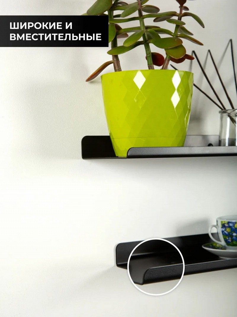 Комплект полок металлических настенных. Универсальные навесные парящие полочки из коллекции "Минимализм" спроектированы для современных интерьеров кухни, гостиной, спальни, ванной и туалета.