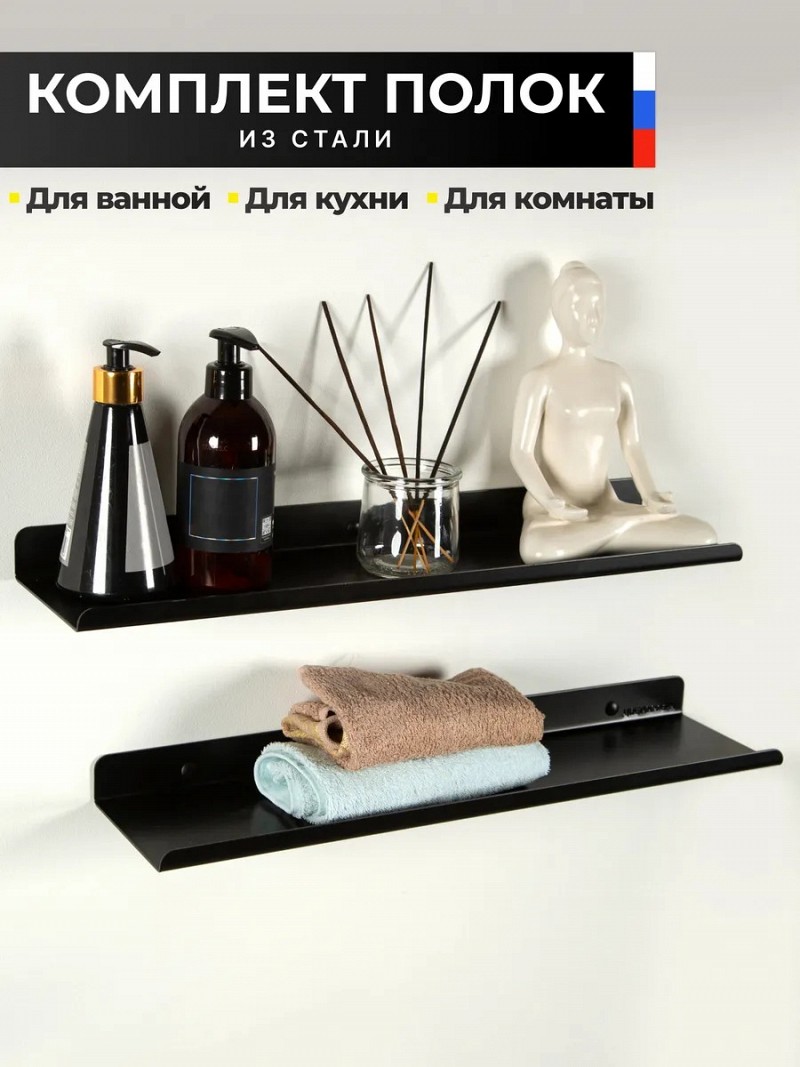 Комплект полок настенных для ванной, кухни (черный)