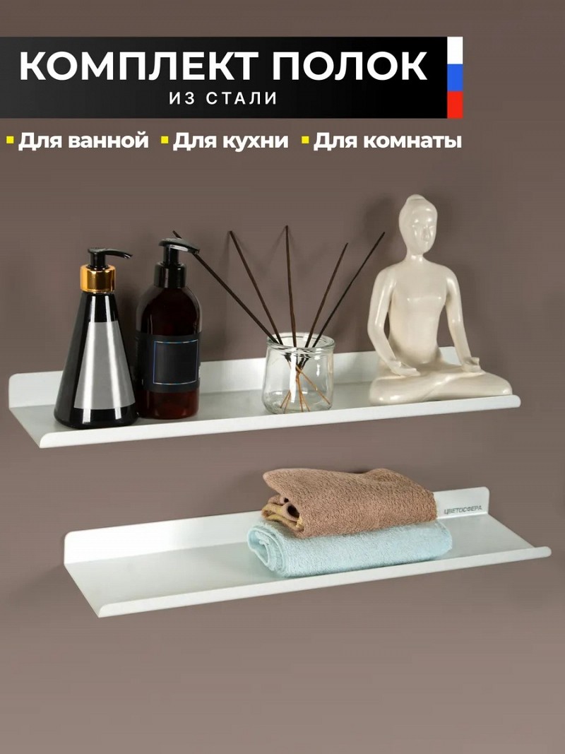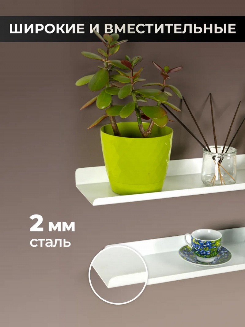 Комплект полок металлических настенных. Универсальные навесные парящие полочки из коллекции "Минимализм" спроектированы для современных интерьеров кухни, гостиной, спальни, ванной и туалета.