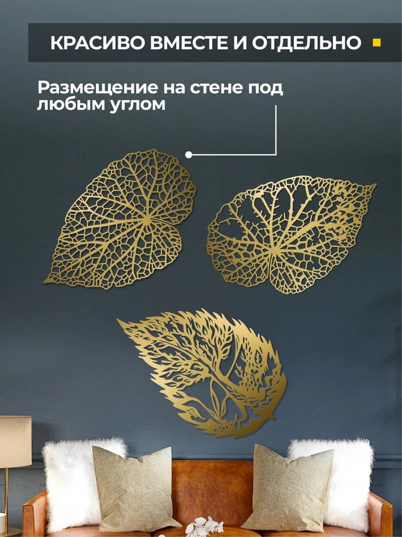 Панно металлическое на стену «Золотые листья»