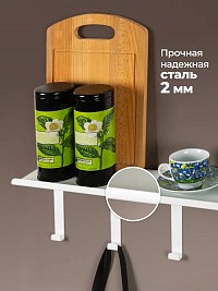 Полка металлическая настенная с крючками. Универсальная навесная полочка из коллекции "Минимализм" спроектирована для современных интерьеров кухни, прихожей, спальни, ванной и туалета.
