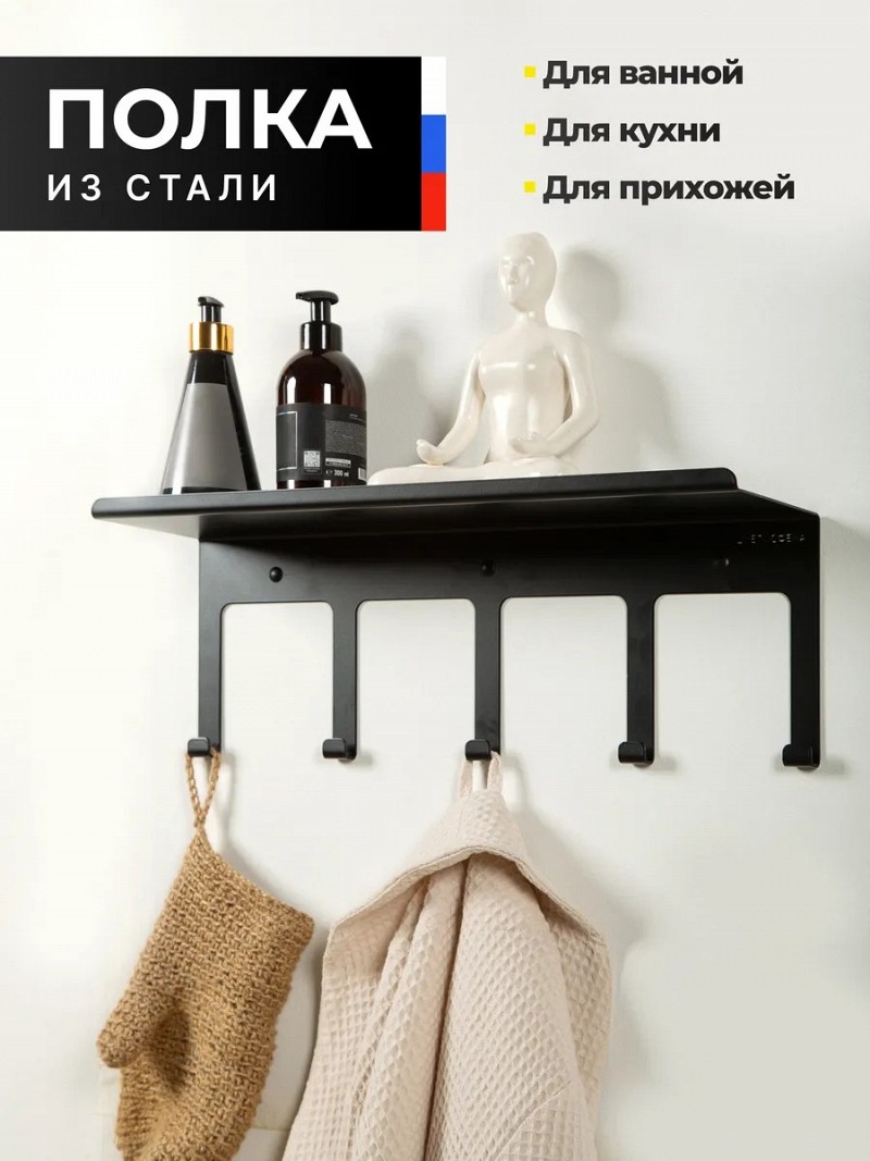 Полка настенная для ванной, кухни, прихожей (черная)