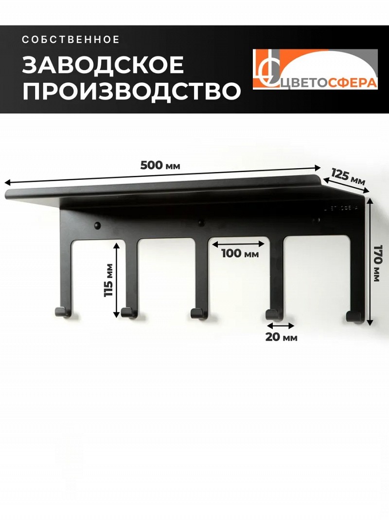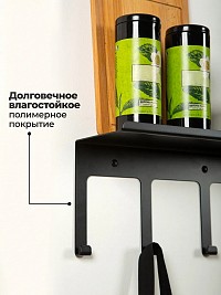 Полка металлическая настенная с крючками. Универсальная навесная полочка из коллекции "Минимализм" спроектирована для современных интерьеров кухни, прихожей, спальни, ванной и туалета.
